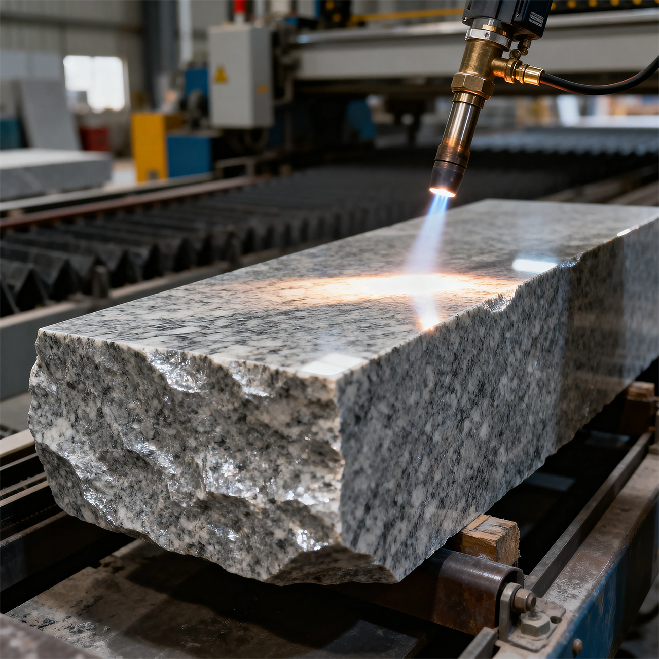 Процесс включает нагрев гранита до температуры 500–1000°C, а затем быстрое охлаждение. Этот термический шок меняет структуру поверхности, делая ее более гладкой и устойчивой.